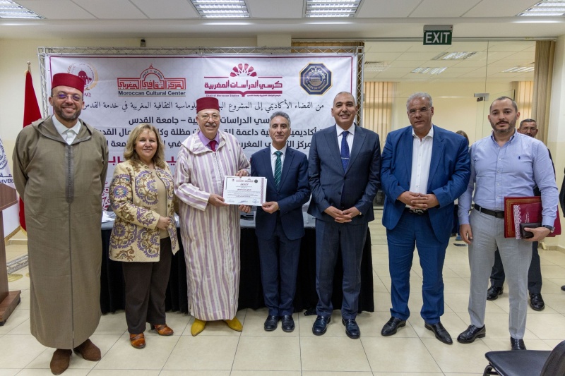 واستهلت الفعاليات، التي احتضنتها جامعة القدس، بزيارة مقر كرسي الدراسات المغربية في كلية الهندسة، قبل تدشين رواق الكتاب المغربي، في مكتبة الجامعة، بحضور سفير المملكة المغربية لدى دولة فلسطين، عبد الرحيم مزيان، ورئيس الجامعة، الدكتور حنا النور، إلى جانب المدير المكلف بتسيير وكالة بيت مال القدس الشريف، محمد سالم الشرقاوي، ورئيسة الكرسي، الدكتورة صفاء ناصر الدين.