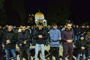 بيت لحم 2000 – أدى نحو 50 ألف مصلٍ، مساء اليوم الأحد، صلاتي العشاء والتراويح في رحاب المسجد الأقصى، رغم القيود والإجراءات المشددة التي فرضتها قوات الاحتلال الإسرائيلي على دخول المصلين.
