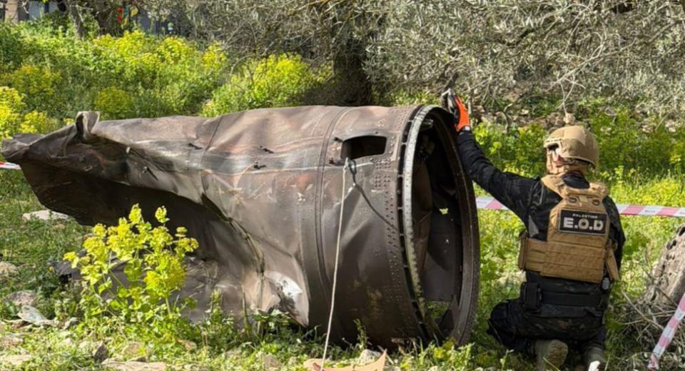 الشرطة تتلف جسماً مشبوهاً وتتعامل مع شظايا صاروخية في بلدة بيرزيت