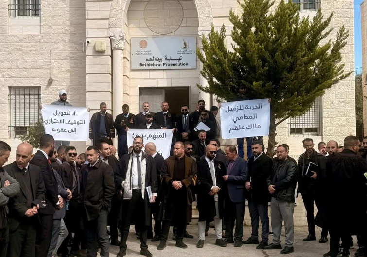 أخبار بيت لحم بيت لحم.. محامون ينظمون وقفة احتجاجية أمام النيابة العامة رفضاً لاستمرار توقيف زميلهم في... بيت لحم 2000 – قال المحامي صلاح جدال، اليوم الخميس، إن قضية توقيف زميله المحامي مالك علقم تتعلق بنزاع مستندي حول... 26 فبراير, 2026 12:09 ص